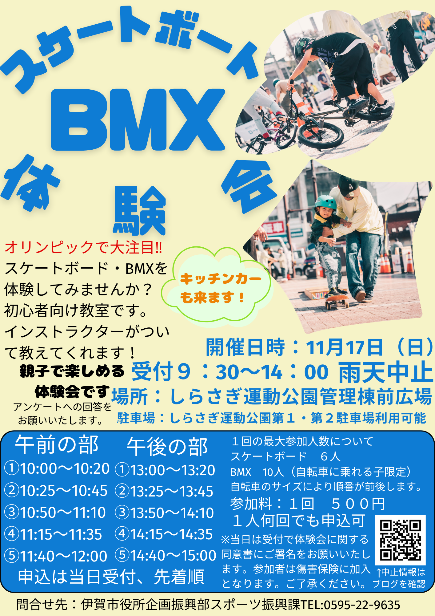 これは、スケートボード・BMX体験会についてのお知らせなどのために公開しているブログです。 雨天中止の連絡は、当ブログにて午前6時30分頃に掲載いたします。
